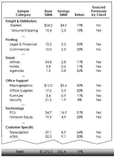 aggressively sources its client’s spend in a wide-range of categories. Our approach